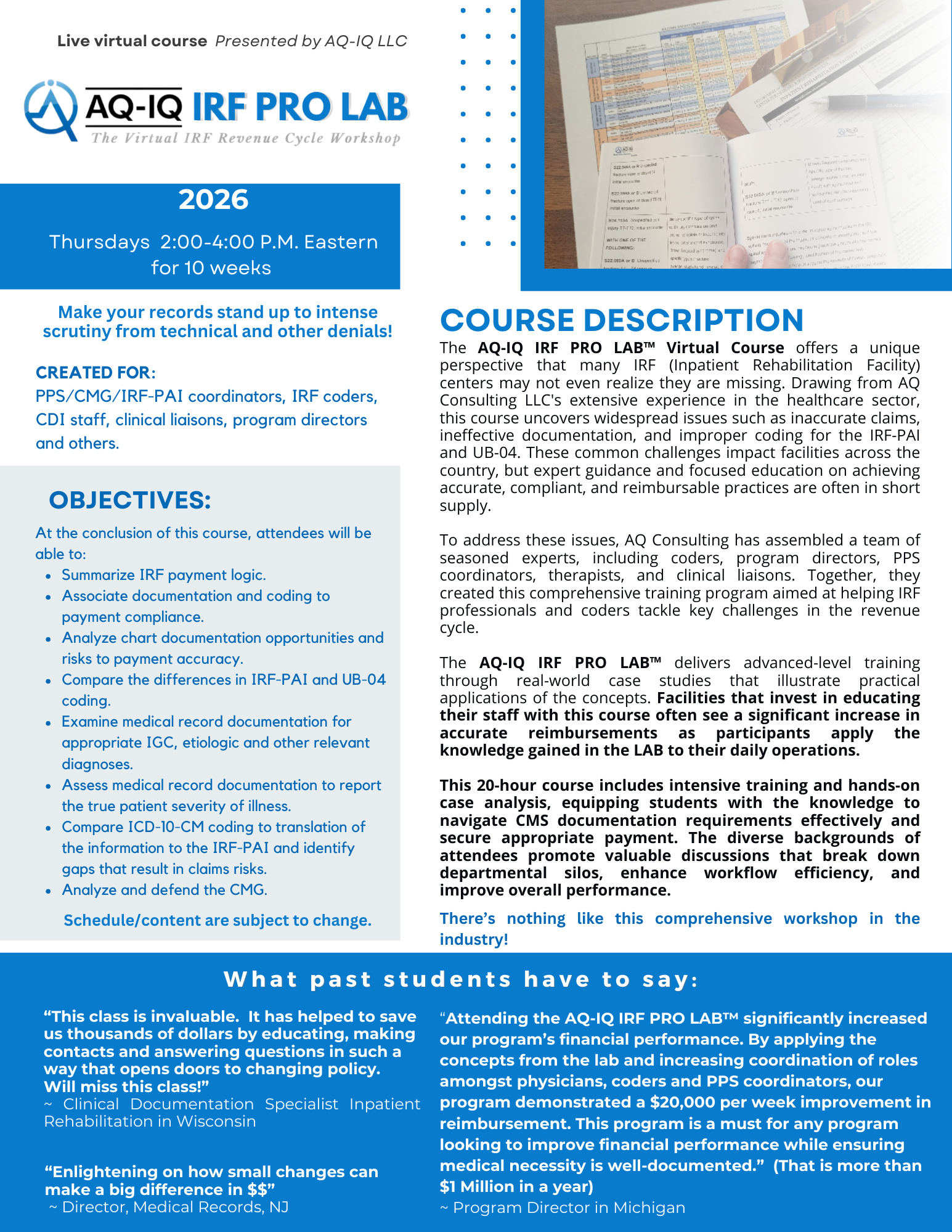 AQ-IQ 2025 IRF PRO LAB virtual course brochure